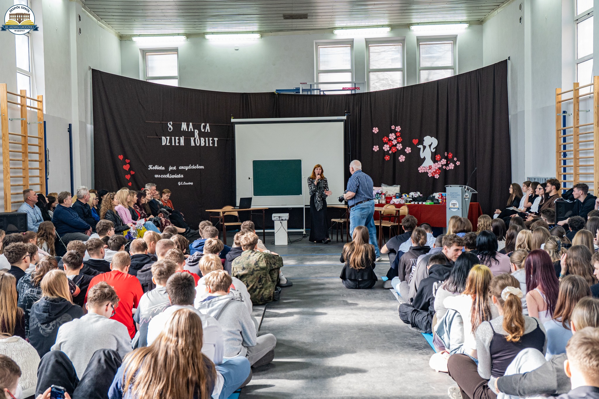 W poniedziałek 9 marca nasza społeczność szkolna świętowała Dzień Kobiet. Wszystkie Panie zostały obdarowane kwiatami lub słodkościami. Tegoroczni maturzyści przygotowali przy pomocy wychowawczyń akademię poświęconą Kobietom, której mottem były słowa: „Kobieta jest arcydziełem wszechświata”.