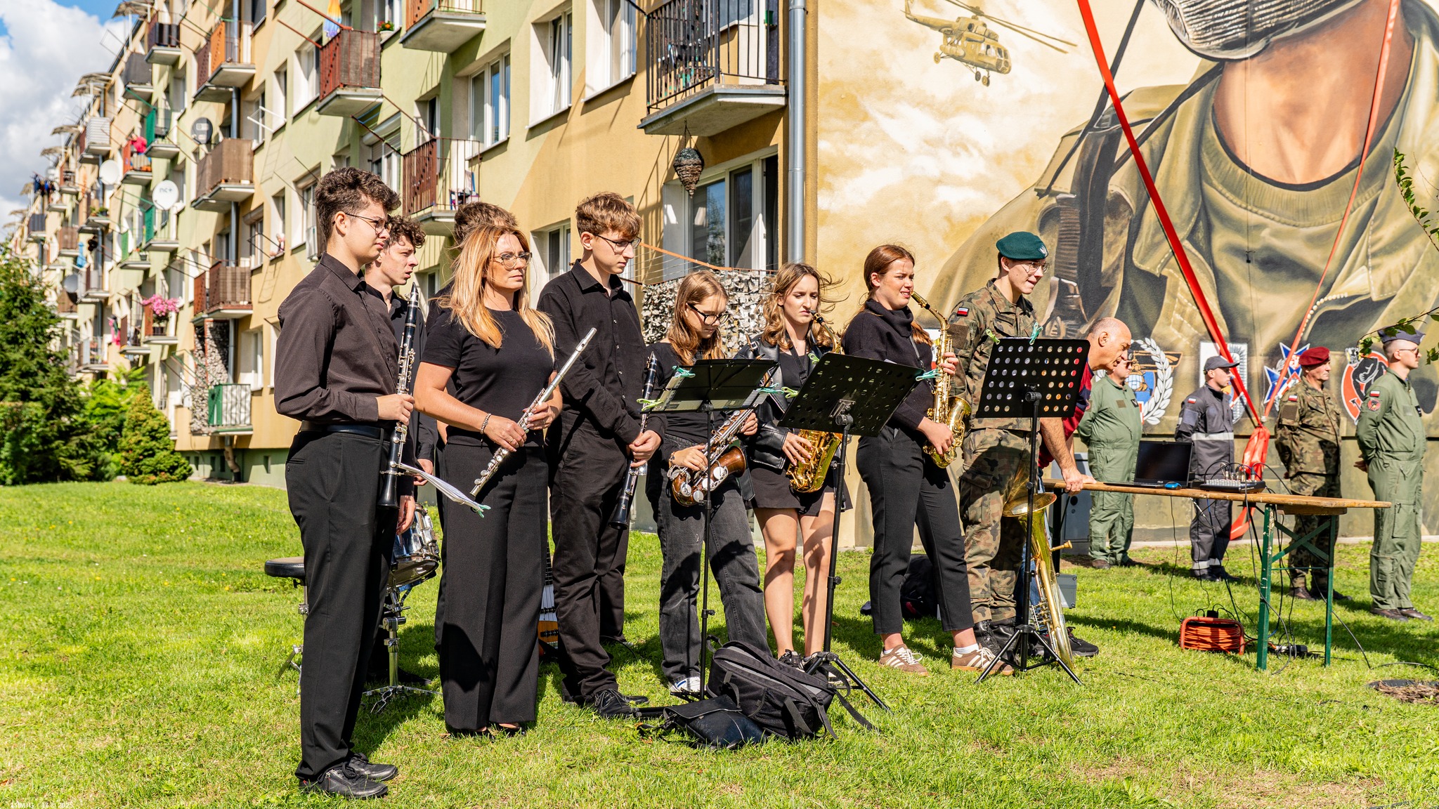 W uroczystości, poza przedstawicielami służb mundurowych i lokalnych władz, wzięli również udział nasi Uczniowie (nie tylko z klas mundurowych) wraz z Opiekunami, a nasza Szkolna Orkiestra zadbała o oprawę muzyczną wydarzenia.