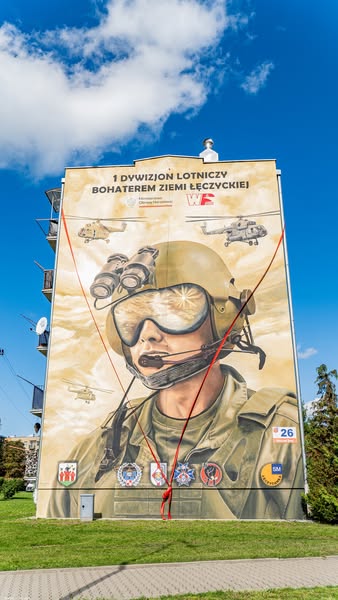 Dzisiaj (16 września) odbyło się uroczyste odsłonięcie muralu na ścianie bloku mieszkalnego w Łęczycy. Mural upamiętnia 1 Dywizjon Lotniczy z Leźnicy Wielkiej.