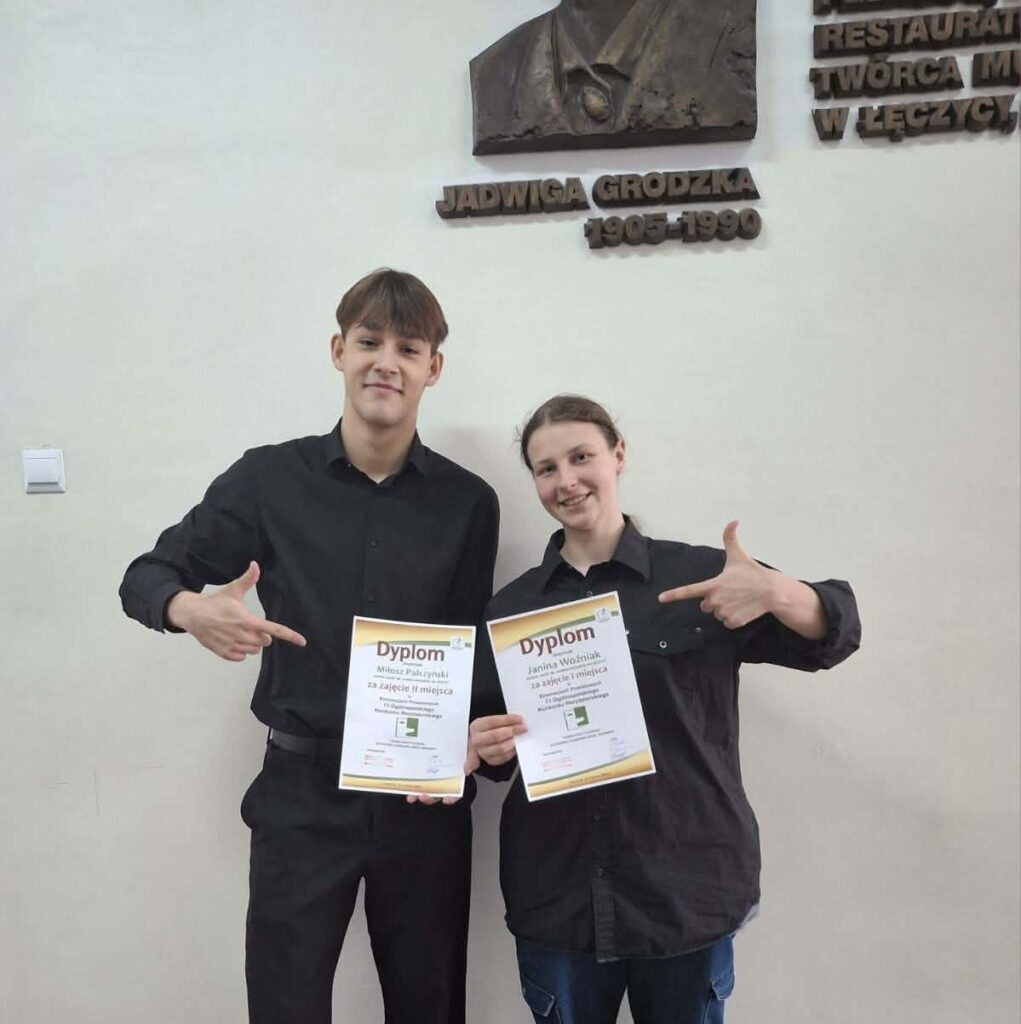 26 marca w Domu Kultury w Łęczycy odbyły się Powiatowe Eliminacje Konkursu Recytatorskiego. Z dumą informujemy, że Jasia Woźniak z klasy 4 TIF zdobyła pierwsze miejsce, a Miłosz Pałczyński z klasy 3 CLO zajął drugie miejsce. Serdecznie gratulujemy i życzymy dalszych sukcesów!
