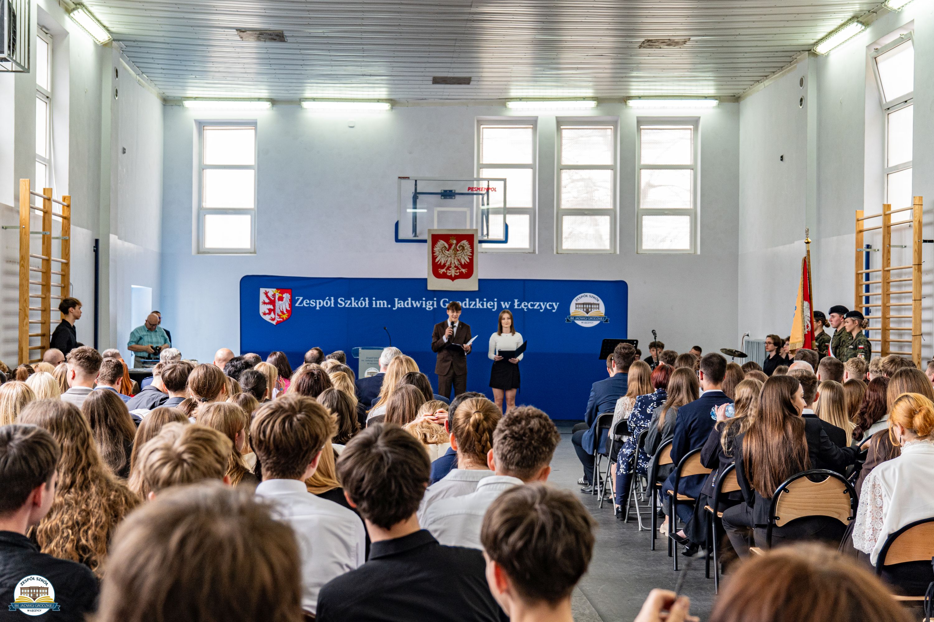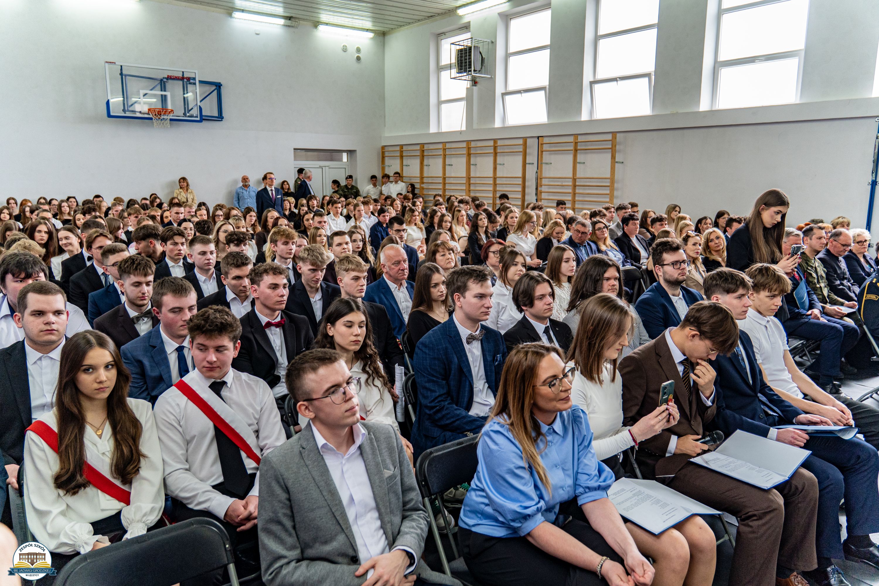 W uroczystości wzięli udział zaproszeni goście, nauczyciele, uczniowie oraz najważniejsi bohaterowie tego dnia – Absolwenci klas: 4ACLO, 4 DLO, 5 ELF, 5 TEA oraz 5 TIN.
